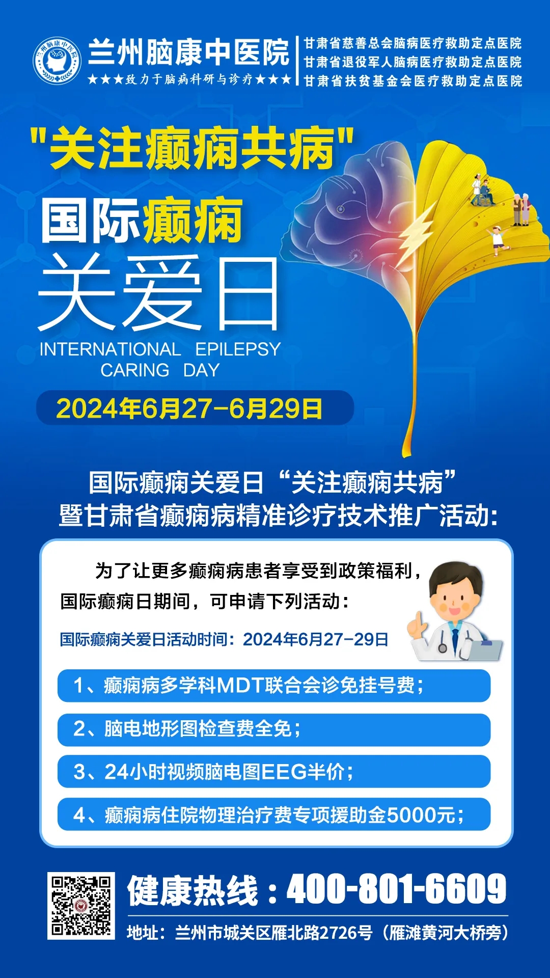 在6·28国际癫痫日来临之际,“甘肃省癫痫病精准诊疗学术高峰论坛·暨癫痫病专项援助项目启动仪式”在我院学术报告厅举行。我院特别向患者及公众宣传“既要关心癫痫发作的诊治,也要重视癫痫的非发作症状诊治”的理念,尤其关注患者的心理健康、认知功能和生活质量等状况,教育患者积极参与到疾病的自我管理中,为提高患者生活质量、早日回归社会作出努力。
