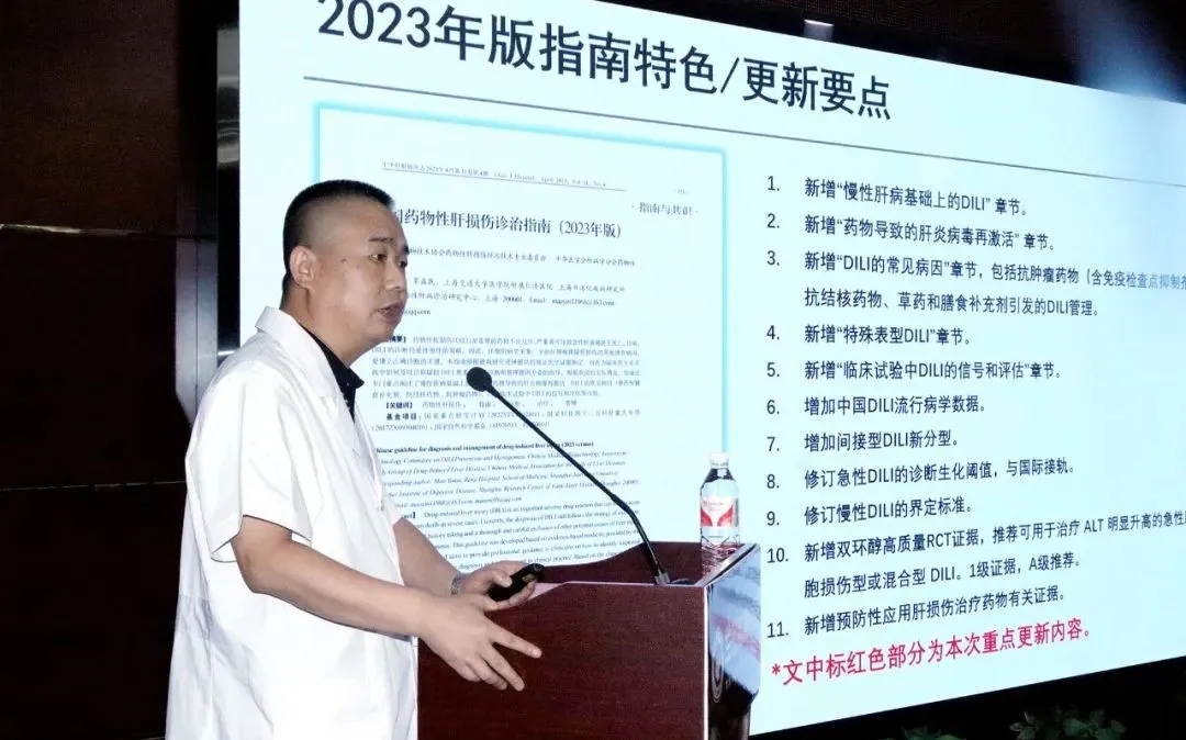 在专题报告环节,由兰州大学第二医院肝病科副主任医师,中国医师协会肝癌专业委员会肝硬化诊治专业委员会(学组)委员 李光明主任做《中国药物性肝损伤诊治指南(2023版)院内巡讲会》专题报告,报告旨在深入解析指南的核心内容,分享药物性肝损伤(DILI)的最新研究进展与临床管理经验,以期提升医院在DILI诊治方面的能力。